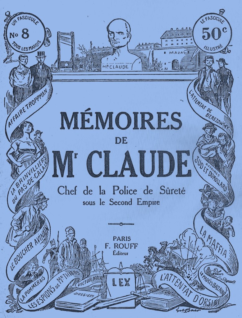 [3] Mémoires de Monsieur Claude, Chef de la Police de Sûreté sous le Second Empire, 10 vols. (Paris: Jules Rouff, Éditeur, 1881-1883). Reissue: Mémoires de Mr. Claude, in 103 fascicules (Paris: F. Rouff, [1884-1885]).