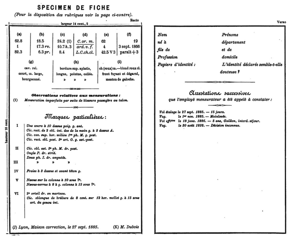 The revised portrait parlé individual identity card (1893).