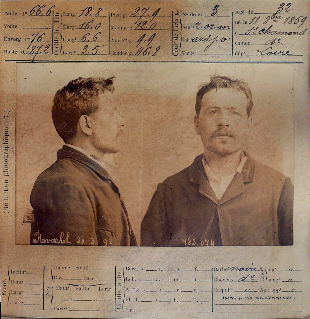 While Bertillon’s anthropometric system involved quite a bit of “fuzzy math,”[3] there was widespread agreement at the Rome conference that it paved a solid path toward recidivist identification. In 1888, Bertillon was made Chief of the Service de l’Identité Judiciaire (“Judicial Identity Services”) at the Paris Police Prefecture. His crowning achievement occurred in March 1892, when his system was used to positively identify the anarchist bomb thrower Ravachol.