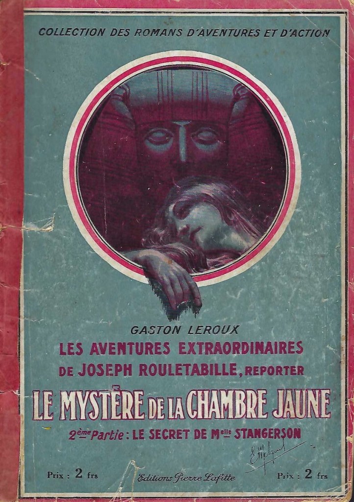 Cover of Le Mystère de la Chambre Jaune, Part 2, Le Secret de Mademoiselle Stangerson. Series “Les Aventures extraordinaires de Joseph Rouletabille.” Illustration by Maurice Toussaint. Paris: Pierre Lafitte, 1920. Author’s Collection.